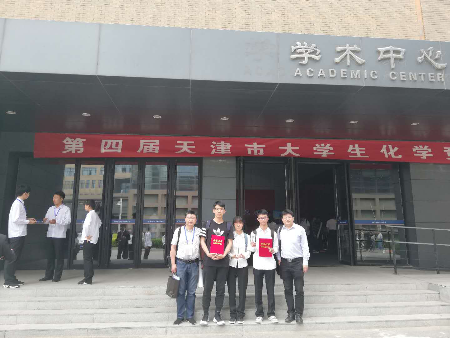 在后续的团体赛中,由理学院唐向阳与马骁飞老师担任指导教师,团队学生成员包括中郭家豪(2015级分子科学与工程)、李娇(2015级制药工程)、韩尚林(2015级应用化学),这三位同学均在前期化学竞赛理论知识个人赛中获得一等奖,这支队伍是理工结合具有天大特色的团队,最终在团体赛决赛中获得团体赛一等奖,同时我校也被授予优秀组织奖。