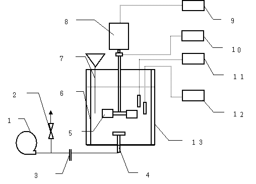 8—电机;9—电机调速器;10—扭距测量仪;11—溶氧仪;12—电导率仪;13—搅拌槽